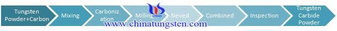 Tungsten carbide powder producing process includes several major steps, namely ingredients calculation, mixing, carbonizing and milling of materials.